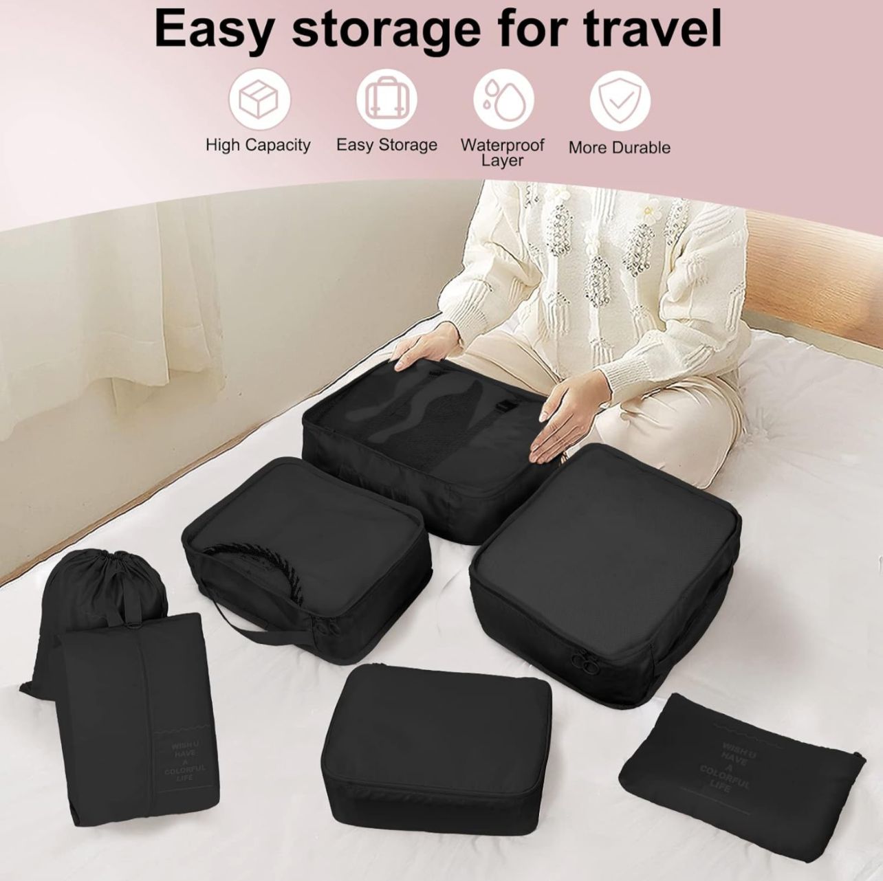 👔【7PC SET LARGE CAPACITY】Different sizes of travel essential bag sets can store classified clothes, dirty clothes, bras, underwear, footwear, cosmetics, towels, toiletries and electronic accessories. It is a good travel companion.