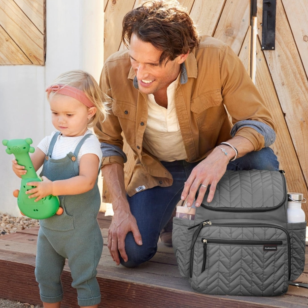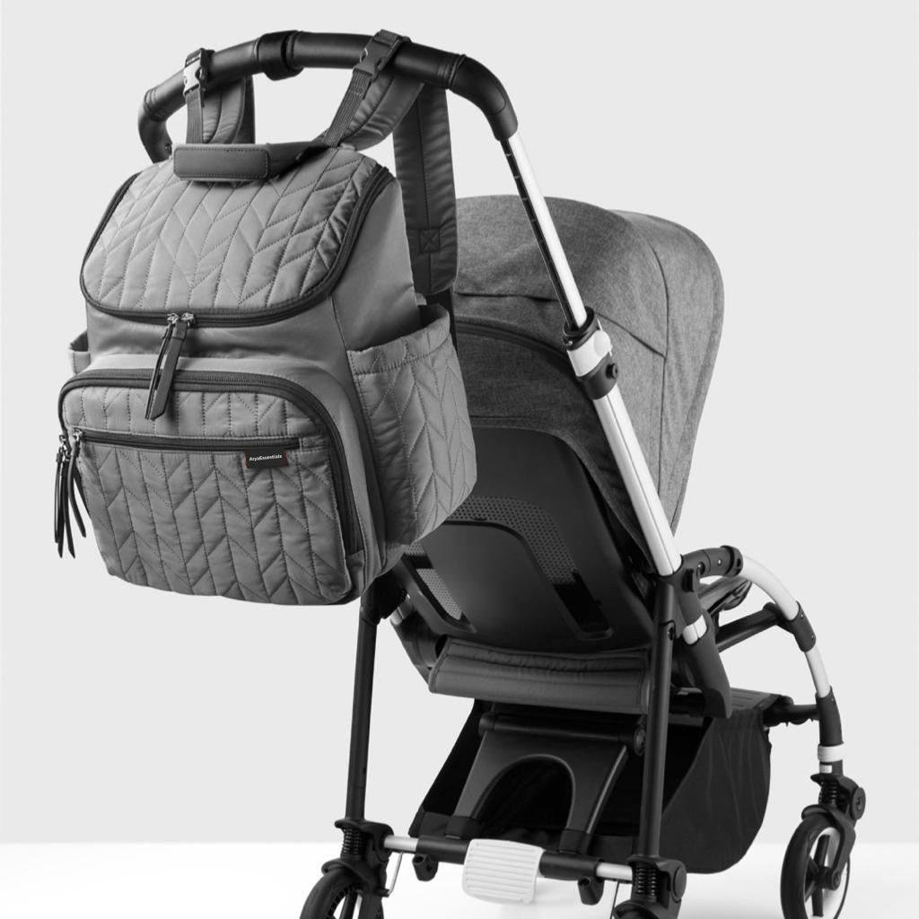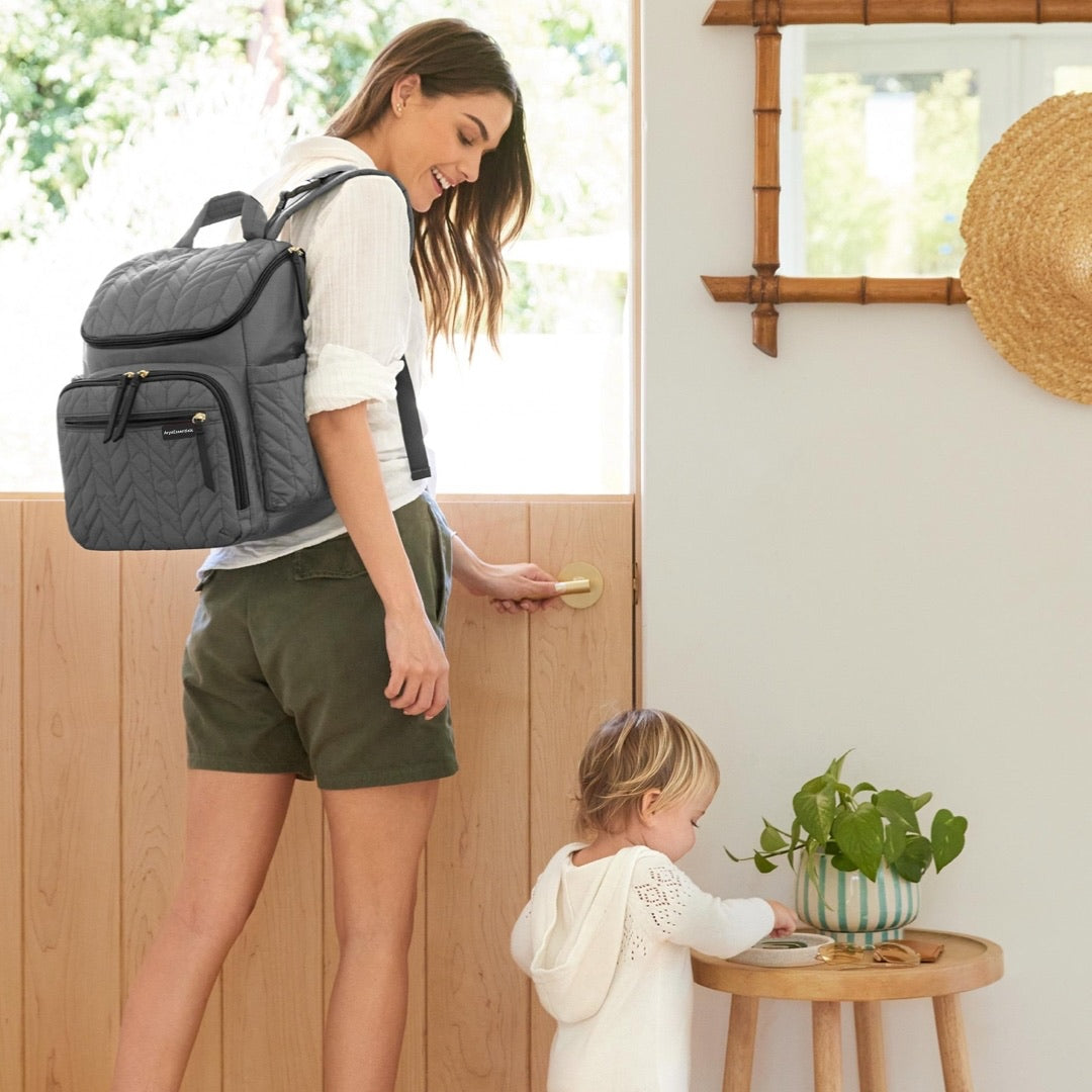 Our lightweight, quilted backpack offers hands-free convenience and special packing for baby's essentials. The spacious interior has room to tote everything from snacks to spare outfits and the extra wide opening makes it easy to find essentials in a pinch. The front compartment includes 2 extra pockets and allows for extra storage. Everything stays in reach with elasticized interior pockets and insulated side bottle pockets. The changing pad pocket performs double-duty, acting as a laptop holder when traveling. With the Forma backpack, function meets fashion to take you from birth to toddlerhood and beyond in style.