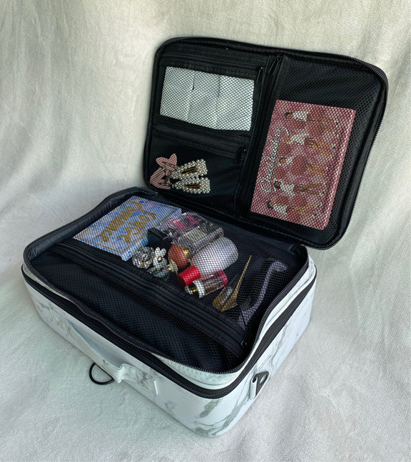 2 large zipped compartments with various storage sections inside — made to fit all types of beauty products and tools perfectly