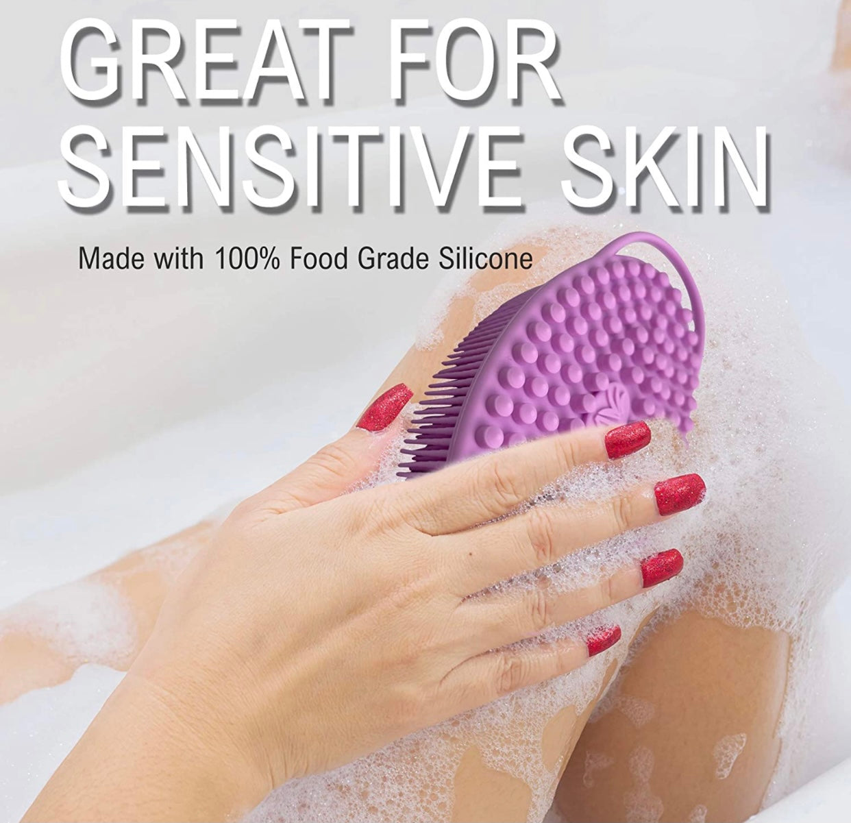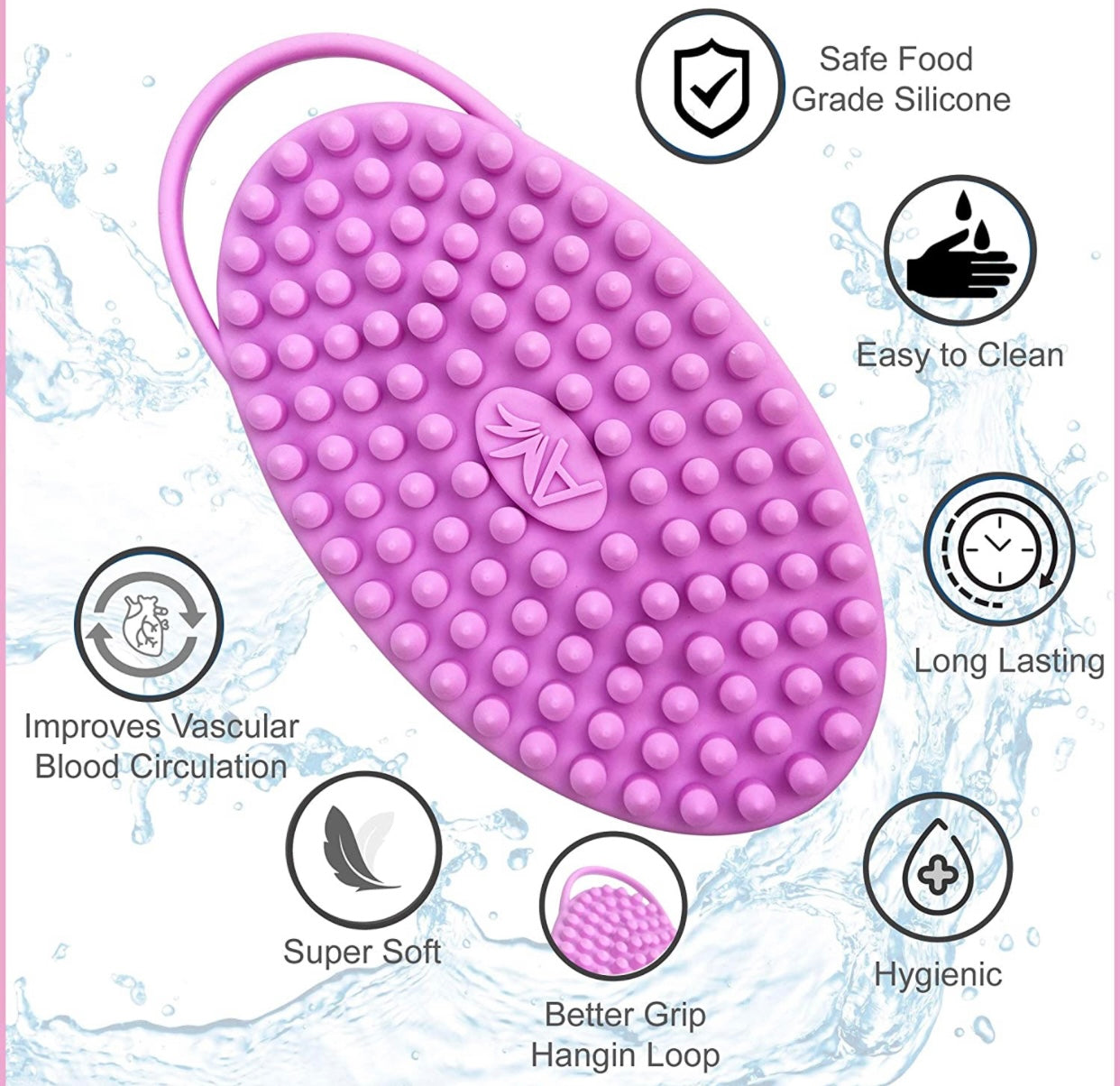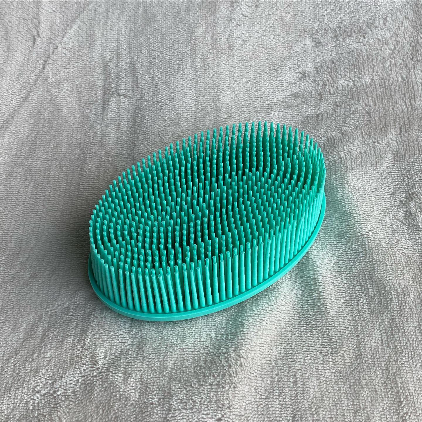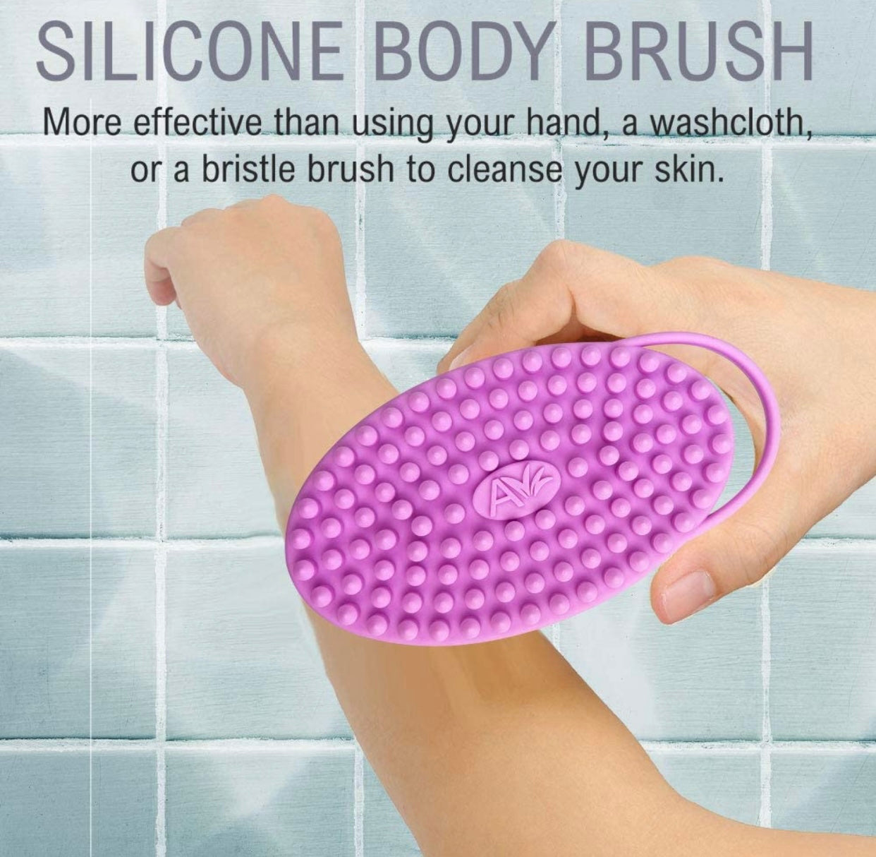 - NOW WITH LOOP HANDLE- For better grip and hangs easily in the shower for better drying. A silicone bath brush is more effective than using your hand, a washcloth, or a bristle brush to cleanse your skin. Silicone is a soft and safe material that can help exfoliate your skin. Rubbing the bristles into your skin stimulates blood circulation and can reduce cellulite in problem areas.