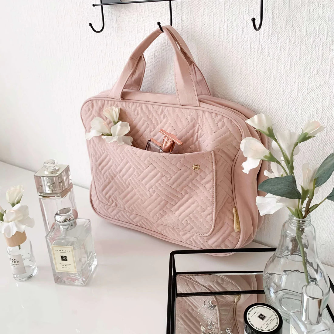 The Toiletry Bag epitomizes Arya Essentials vision of versatility. Features several storage compartments with transparent windows and zipper closures, allowing easy viewing of & access to items. Equipped with elastic straps to keep your products upright and in place, this sturdy and expandable bag is adorned with a metal hook and can save your space.